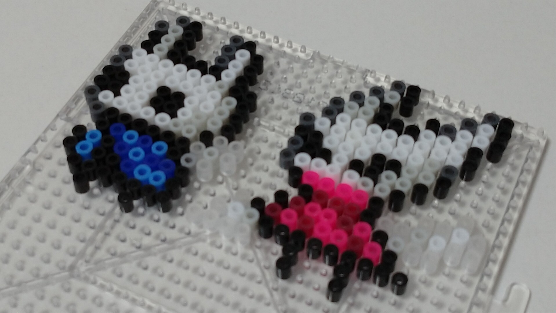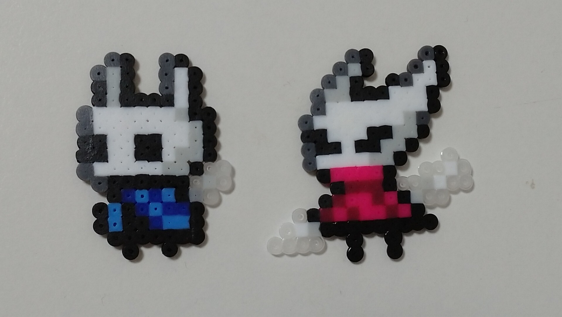 22:34:20 #HollowKnight の主人公とホーネットを #ナノビーズ で作った。イイ感じ。 #ドット絵 #pixelart JPEG JPEG