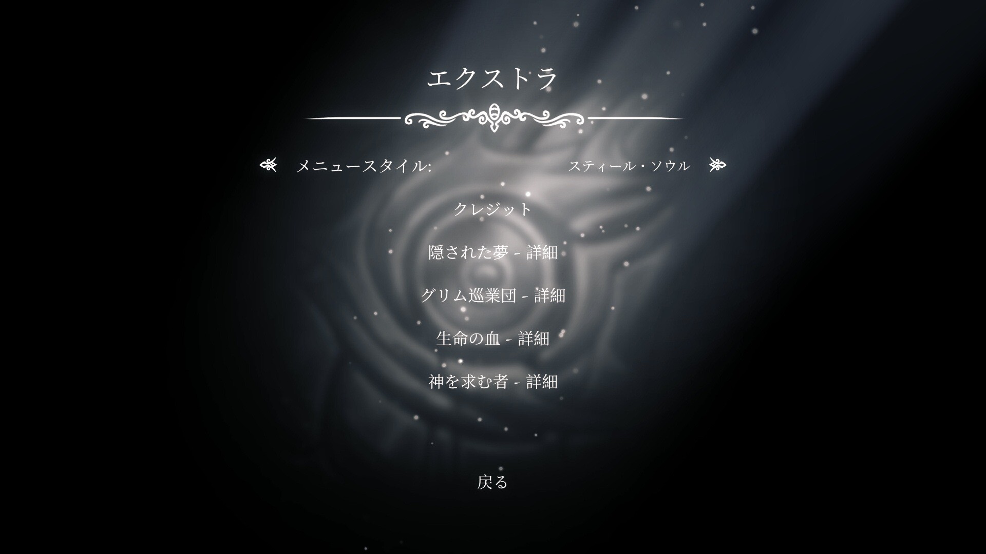 その後、攻略サイトを参照してやりこみ開始。フィールドを駆けずり回って、達成度100%と真のエンディングを達成。あとは、追加コンテンツのグリム巡業団関連の実績を達成できたら満足かな。他にも、スピードラン系や、ノーミス系、ボスラッシュ系の実績があるのだが、そこまでやりこむ気力も体力も無い。